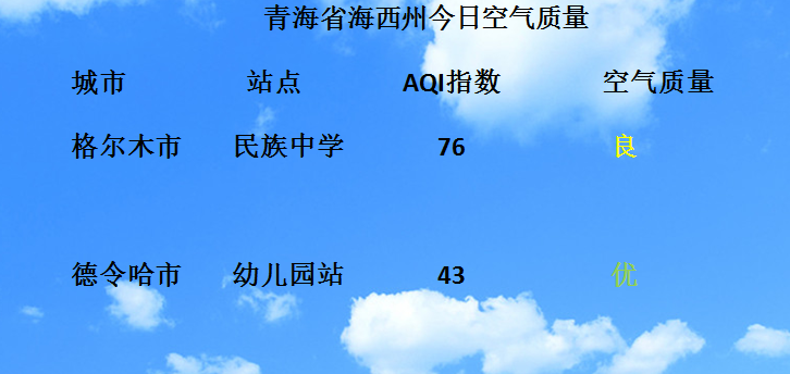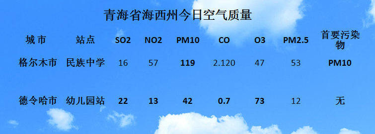 青海省海西州今日空气质量