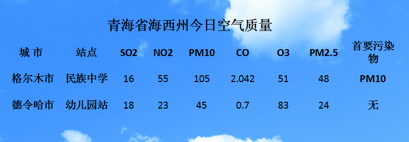青海省海西州今日空气质量