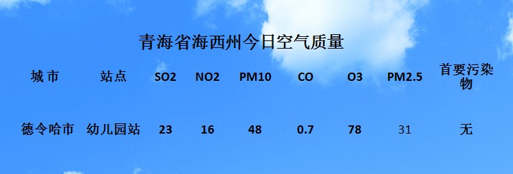 青海省海西州今日空气质量